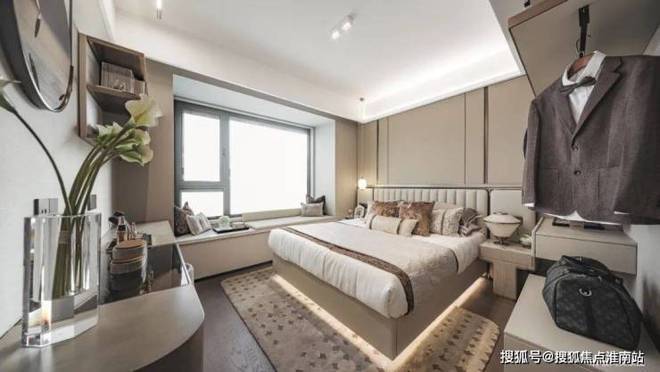 保利虹桥和颂售楼处电话:北次卧一侧也“无墙垛”,室内更通透,也能利用飘窗长度和进深,铺设出一张舒适大床。