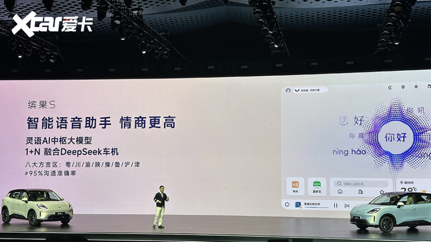 缤果 S 搭载了最新的“1+N”灵语 AI 中枢大模型,且深度融合了DeepSeek ,以智慧人机交互、智能语音助手、多元生态等多维度,为用户打造真正“更懂你的”智慧座舱体验。缤果S作为首批搭载Android13系统的量产车型,带来行业领先的操作体验。通过算法改进、热区调整、转场动效、HMI以及系统优化等多项有效措施,大幅提高了系统运行的效率和流畅性,应用启动速度优化至100ms以内,算力消耗降低28%,滑动帧率提升50%。无论是日常车机操作还是复杂功能调用,都能保持流畅响应,让智能座舱体验更加顺畅高效。智能语音助手采用先进的多口音方言识别技术,支持粤、川、渝、陕、豫、鲁、沪、津等主流方言识别,方言识别准确率高达95%以上。车机系统兼容90%主流手机品牌,全面支持HUAWEI HiCar、ICCOA Carlink、Apple CarPlay。
